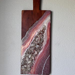 Pink Rose Quartz Geode Resin Wall Art/Resin Wall Art/Geode Inspired Wall Art/Acacia Wood Geode Wall Art
